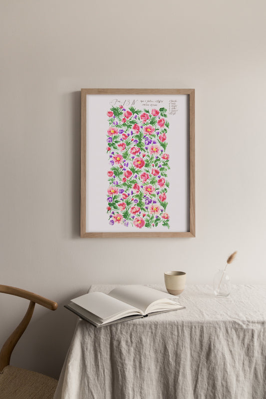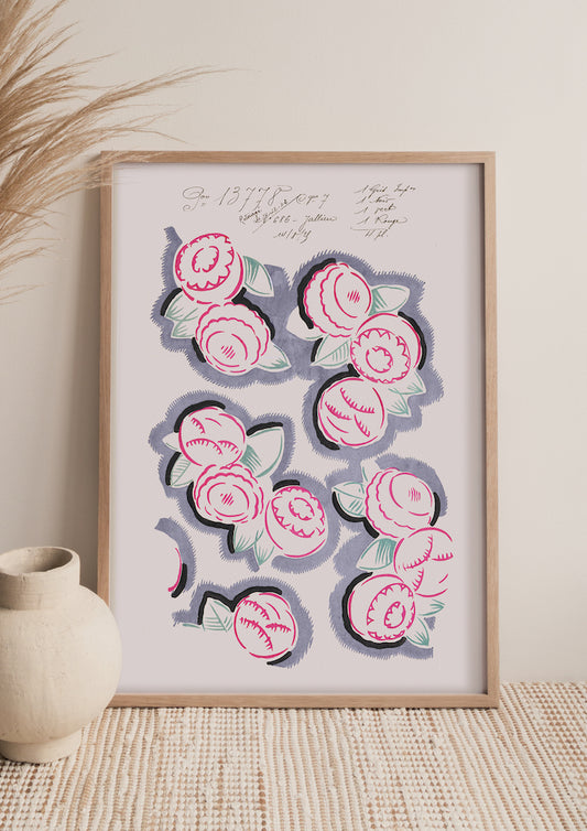 No.105 - Floral Sketch in Belle Blush - Vintage Archive Poster Prints