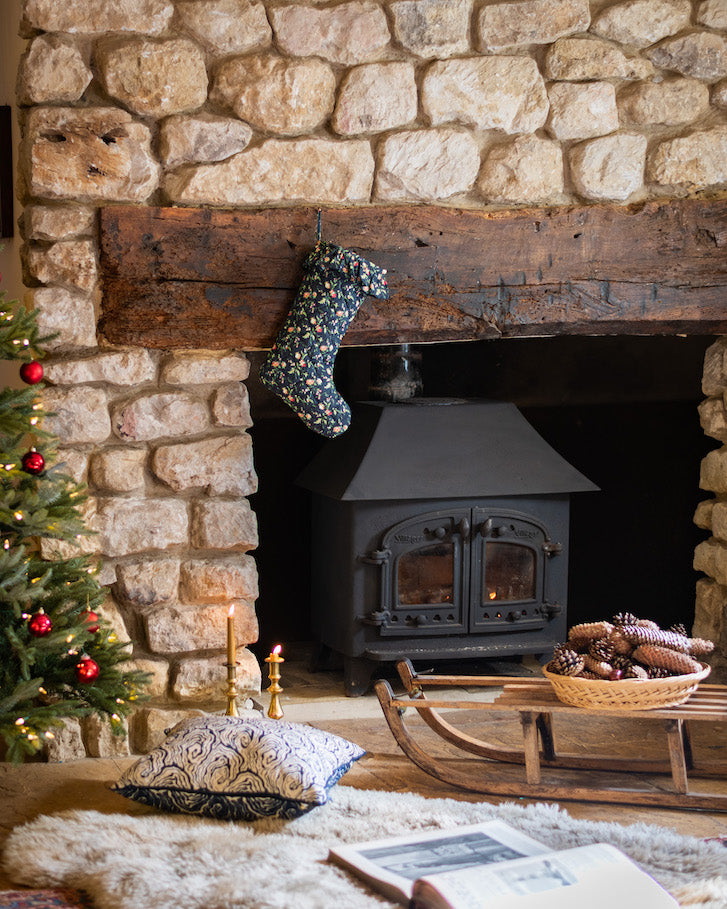 Our dark floral Midnight Blooms print is now available in a beautiful quilted, linen Christmas Stocking.