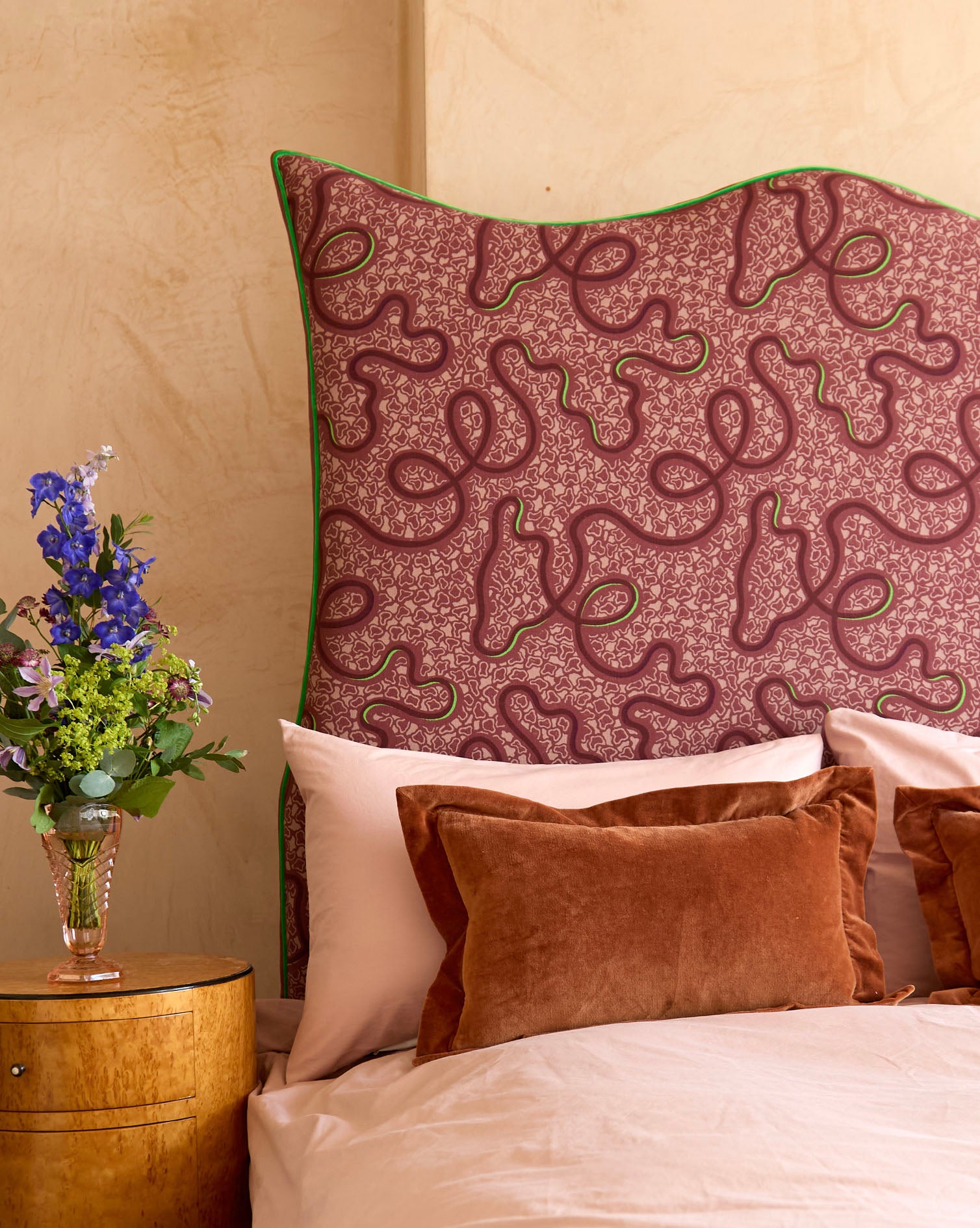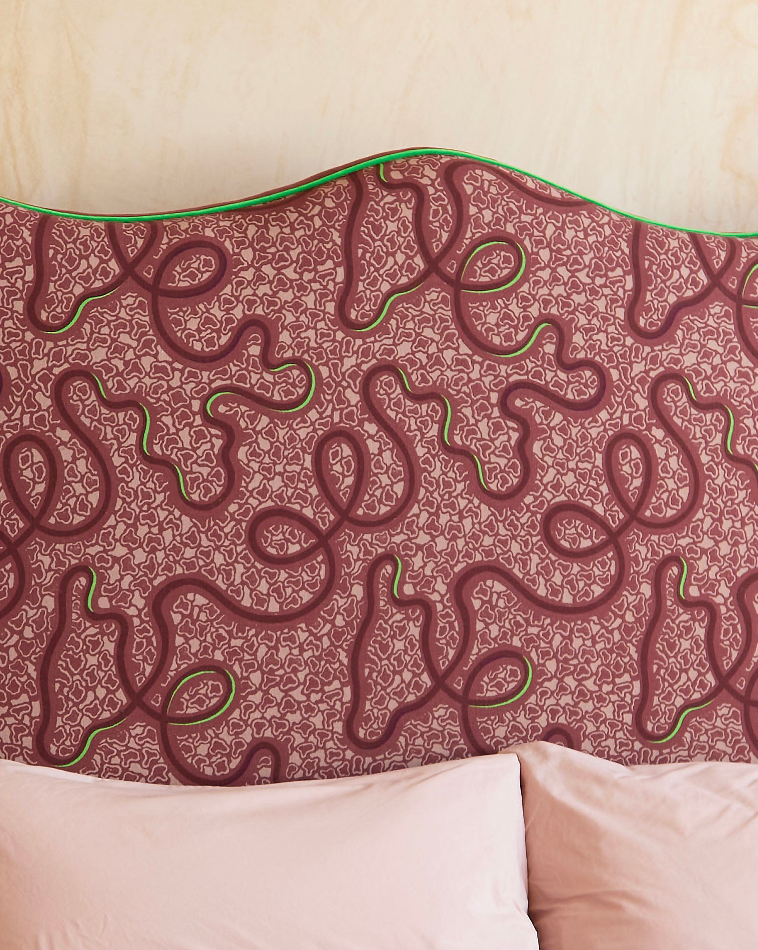 Wave Piped Headboard - The Wiggle Fabric in Raspberry Ripple - Micaela Sharp Collaboration